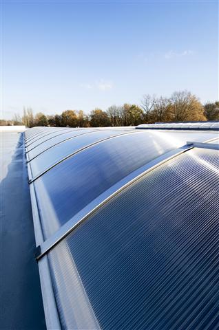 Im Industrie- und im Gewerbebereich sind Lichtbänder aus Polycarbonat, einem lichtdurchlässigen Kunststoff oft auf Hallendächern im Einsatz.